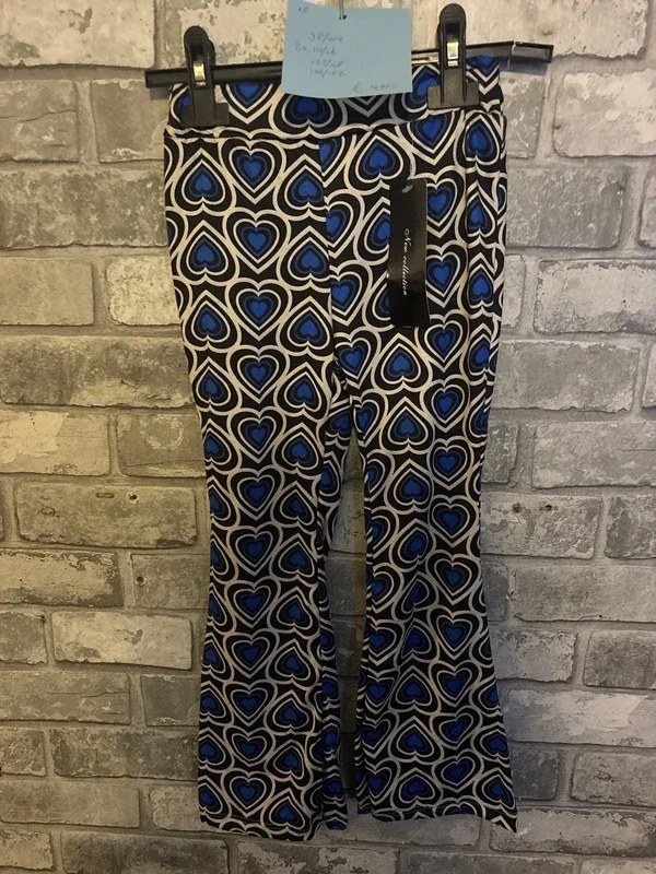 Een echte must-have! Deze flair broek met blauwe hartjes combineert comfort en stijl. Dankzij het flair model en de speelse print is dit een echte eyecatcher. Let op: valt ietsje groter.