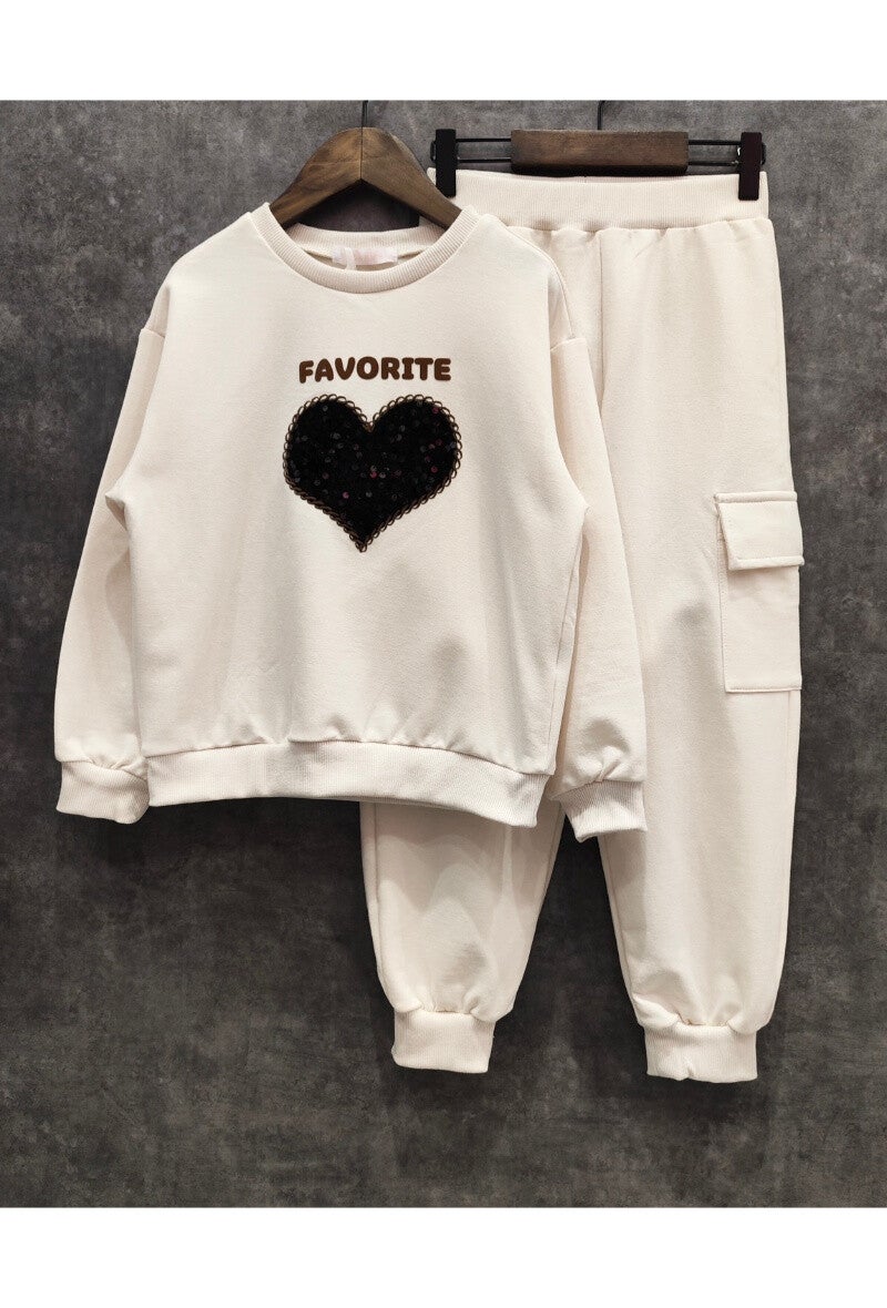 Een echte favoriet! Deze warme set voor meisjes bestaat uit een truitje en een broek met een hartje en de tekst Favorite. Heerlijk warm en perfect voor elke dag.